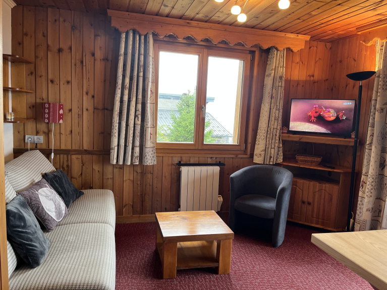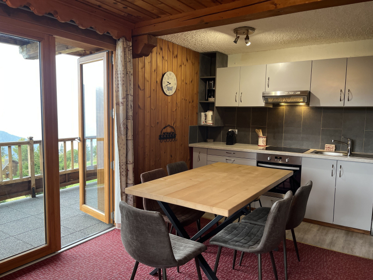 El piso es funcional, cálido y tranquilo. Balcón de 10 M2 orientado al sur con vistas al valle de la Tarentaise.