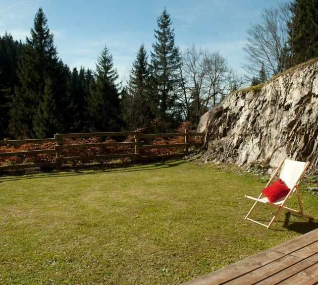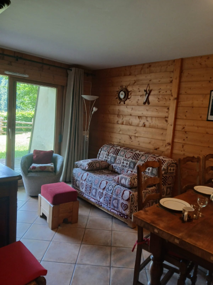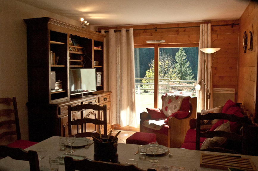 Piso turístico amueblado de 3 estrellas, orientado al sur, en una residencia de varios chalets en medio de los abetos.