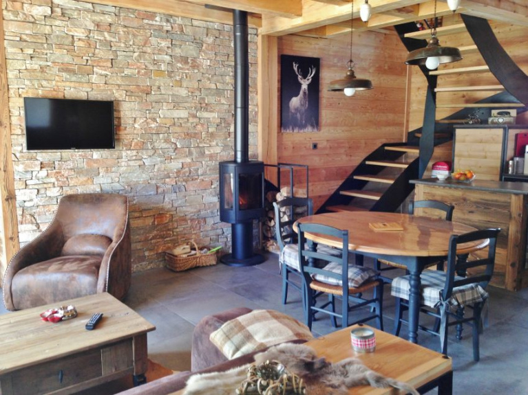 Hecho de piedra y madera, el chalet tiene capacidad para 6 personas para compartir con la familia o los amigos. La cocina equipada, el comedor y el salón le permitirán pasar unas agradables vacaciones. Terraza y espacio exterior con árboles.