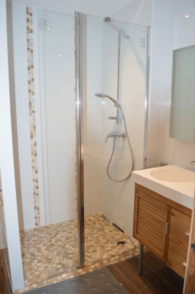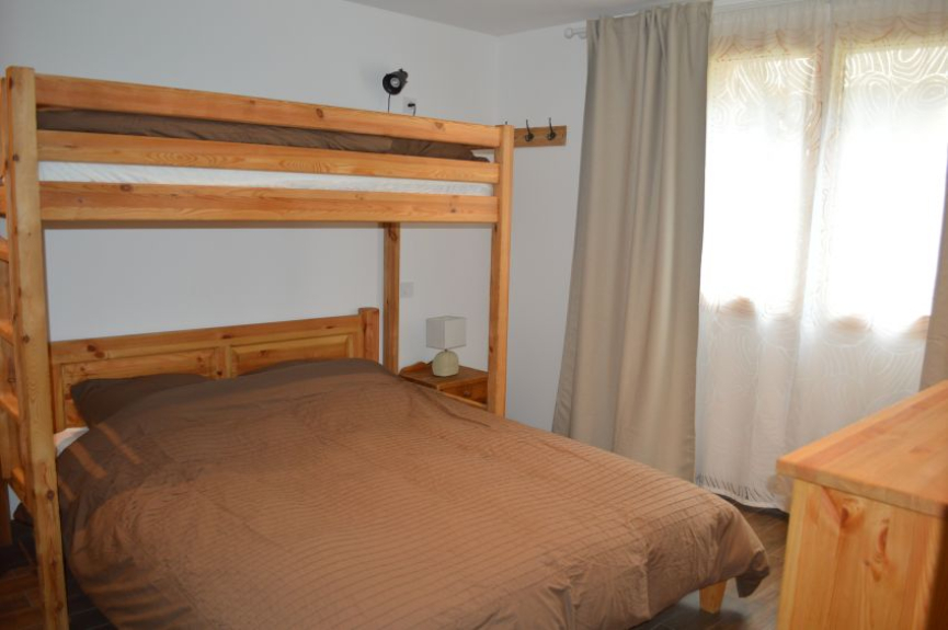 Dormitorio 1: en la planta baja, una cama de 160 cm y una litera para niños. Un cuarto de baño con ducha e instalaciones sanitarias sólo para esta habitación.