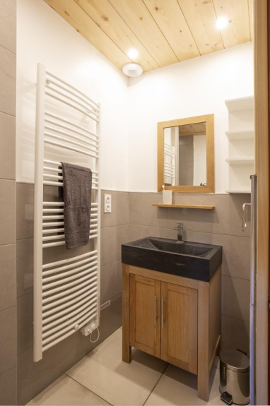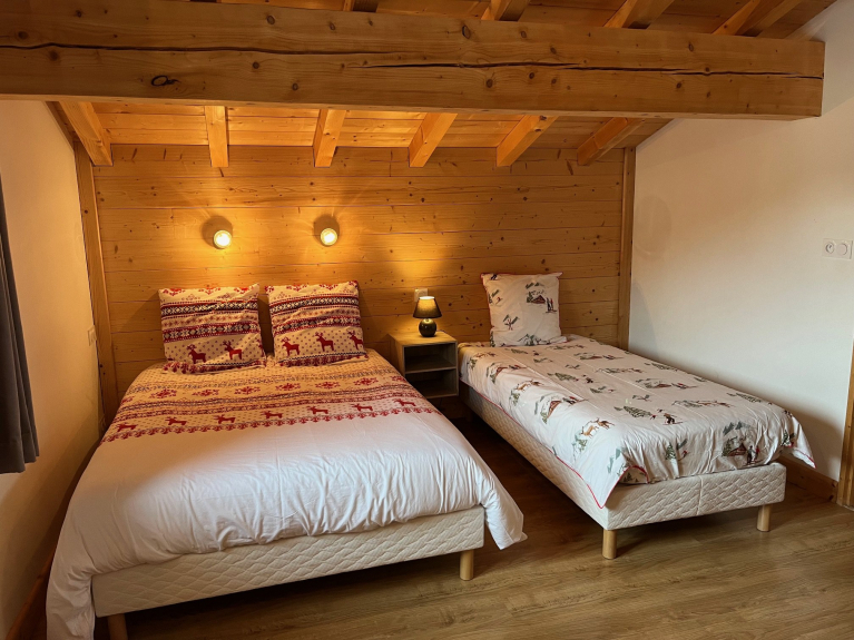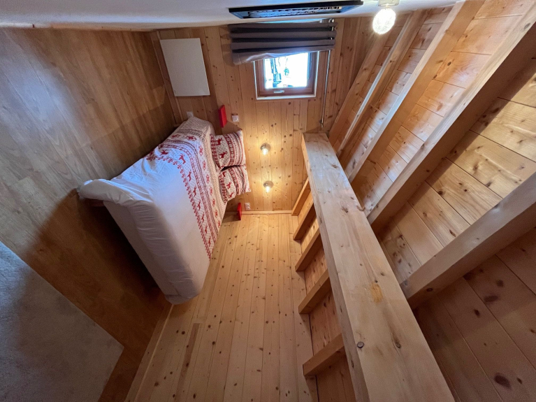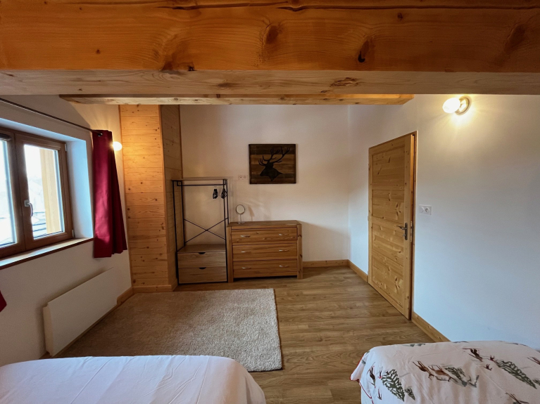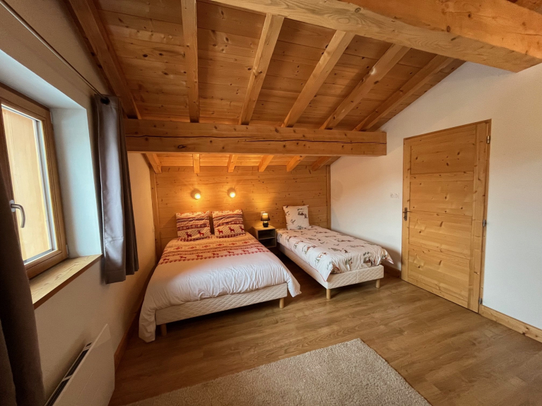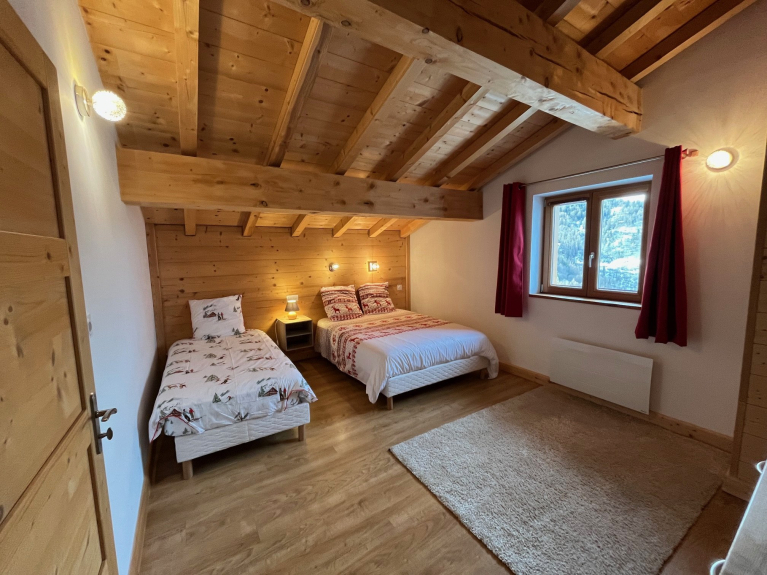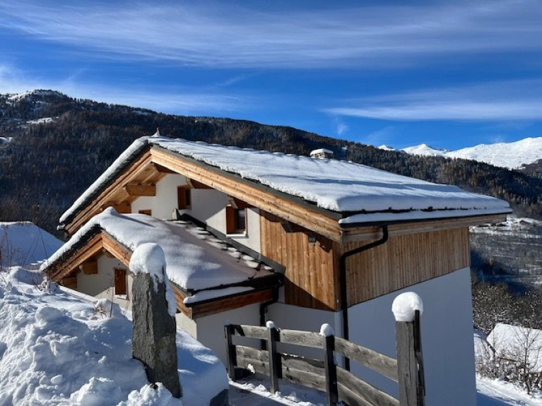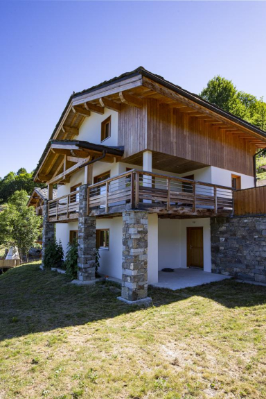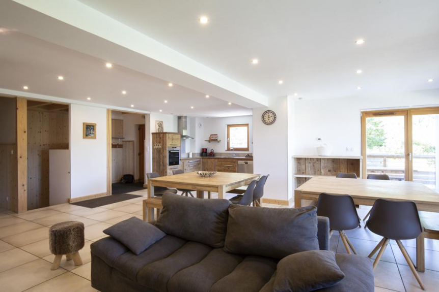 Construido por el propietario en la más pura tradición saboyana con techo de pizarra, paredes de piedra, madera y una decoración cálida, cuidada y moderna.