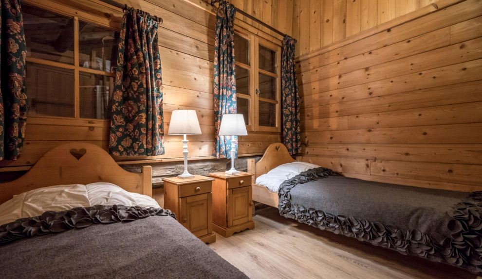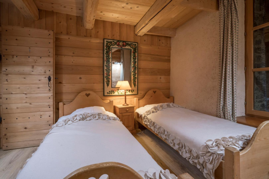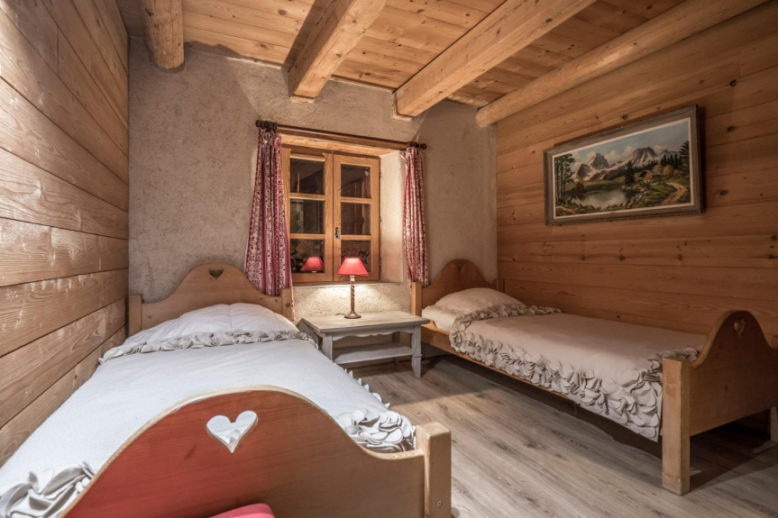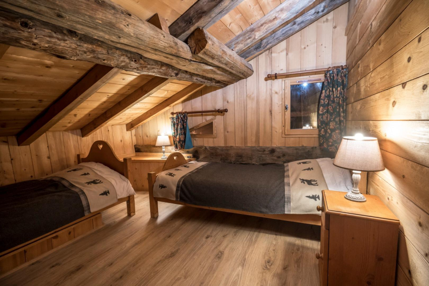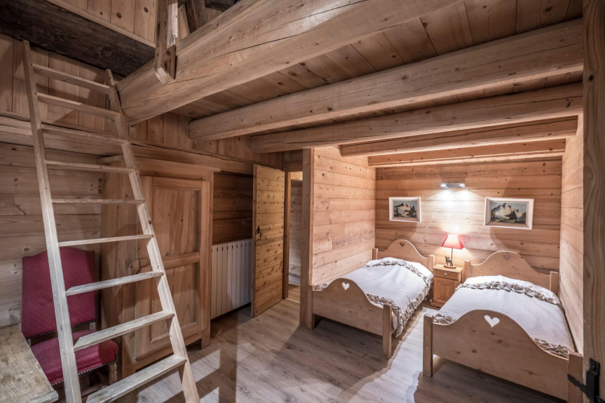 - 5 habitaciones con 2 camas, una de ellas bajo la estructura del techo con una parte de menos de 1,80 m de altura