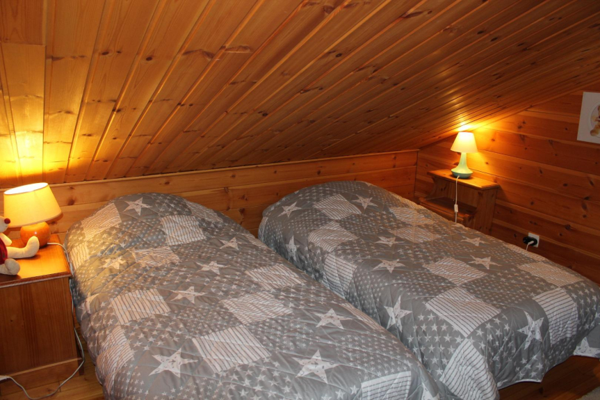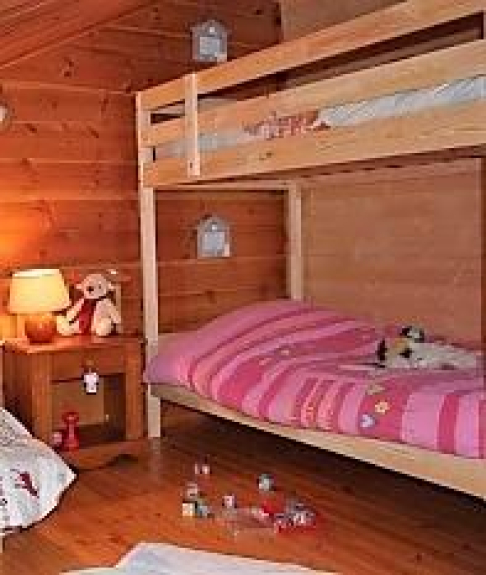 -El dormitorio "refuge des crapules" habilitado para niños con dos literas de 90 cm en la ampliación de la habitación anterior.