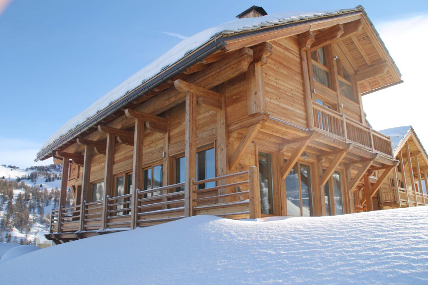 Chalet reciente a pie de pistas situado en el dominio de Fontbonne, idealmente situado en las alturas de Vars (estación muy soleada de los Altos Alpes con nieve garantizada gracias al uso de numerosos cañones de nieve), en un nuevo complejo de chalets de alta gama.