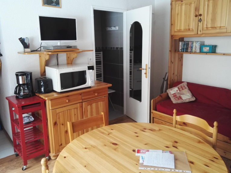 Alquilado en La Norma, el Cosy Resort a 3 km de Modane, un piso muy bonito en un ambiente cálido de montaña. Situado en una pequeña residencia "Les portes de la Vanoise" con ascensor, a pocos pasos de las pistas, los remontes y las tiendas en el centro del pueblo peatonal. El piso tiene una superficie total de aproximadamente 32 m2 y se compone de una gran entrada con 2 literas, un dormitorio independiente con puente de cama y escritorio, un gran salón con mucho espacio de almacenamiento, una cocina americana totalmente equipada (horno, microondas, lavavajillas, nevera, etc.), un cuarto de baño (renovado a finales de 2017) y aseo independiente. Aparcamiento subterráneo en las inmediaciones y amplio guardaesquís (6 personas) dentro de la residencia.