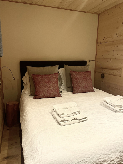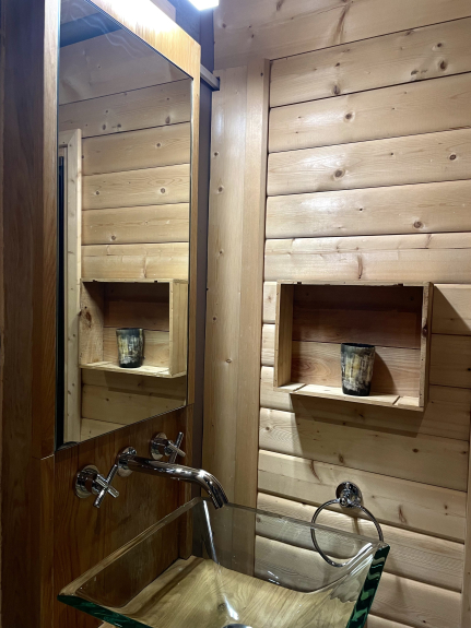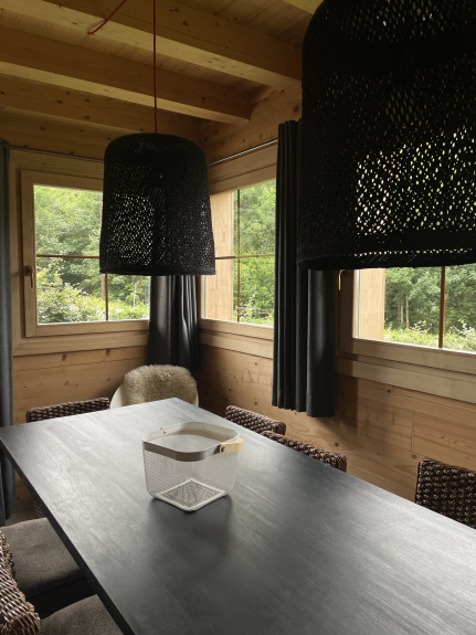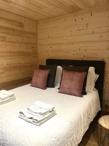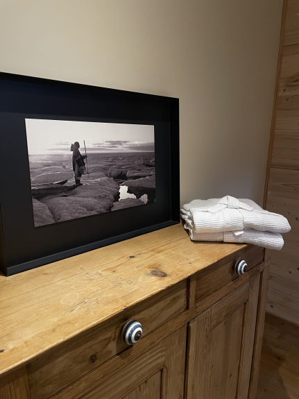 Sauna, albornoces personalizados, edredones y acogedoras zapatillas. Hasta la fecha, no hay Wifi, ni televisión de pantalla plana, pero una cómoda sala de estar y un pequeño bar le permitirán mirarse, hablar de su día y redescubrir el mundo. La televisión y el Wifi se instalarán en el chalet a principios del invierno de 2017.