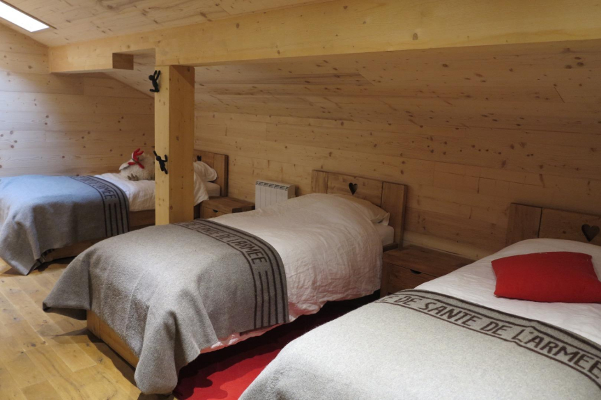 Ofrecemos 3 habitaciones dobles con camas reales 160x200, somieres y colchones de calidad, ropa de cama "Linvosges gama hotelera todo confort" para noches sedosas y mimosas. Una gran habitación para los "piadosos" (o los solteros...), con 3 camas separadas, 1 cama extraíble, es decir 4X (90X200) + 1 cama de bebé si es necesario.