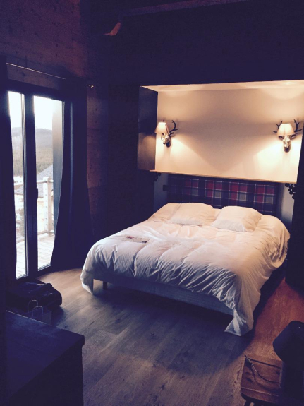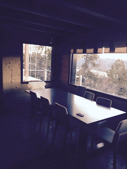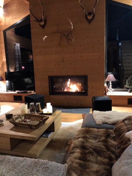 Puedes sentarte en un sofá muy cómodo frente a la chimenea cerrada, con vistas al lago y a la cordillera del Capcir.