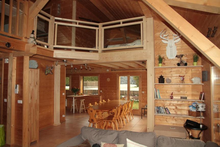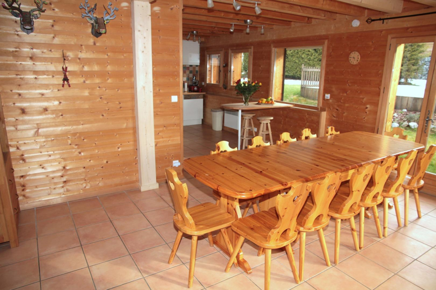 La mesa del comedor es flexible y permite comer hasta 14 personas sin problemas. El chalet dispone de una gran cocina totalmente equipada que se abre a un salón amplio y muy luminoso. la zona del salón ofrece bellos volúmenes con una altura de 5 m bajo el techo. el chalet está muy bien decorado y es cálido. Hay 3 grandes balcones para disfrutar de las vistas.