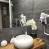 Ducha de mármol italiano, lavabo de mármol, WC suspendido.