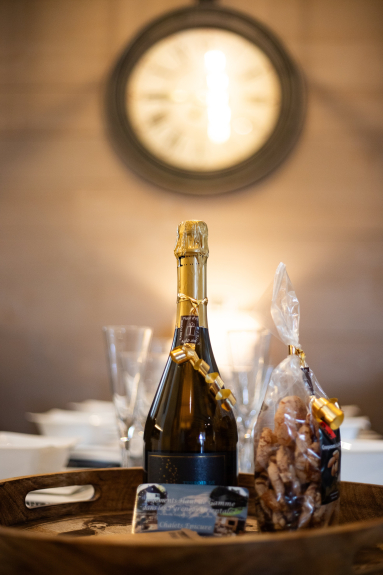 Ofrecemos una gama de golosinas (té, chocolate, cápsulas Nespresso, dulces, etc.) para darle la bienvenida al chalet.
