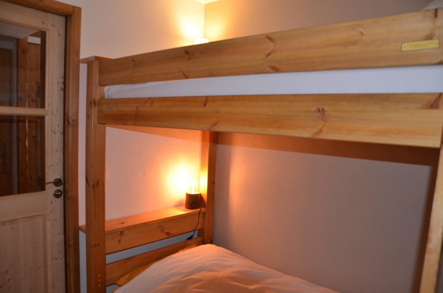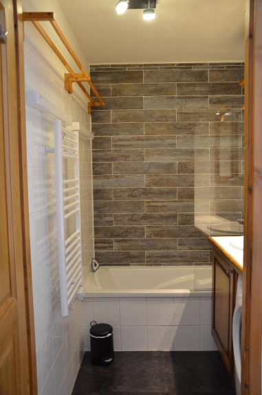 -Una entrada con armario, una zona de comedor/sala de estar con cocina abierta, un dormitorio con ropa de cama de 160x200, un segundo dormitorio más pequeño con literas de 90x200, un baño con bañera/ducha, equipado con una lavadora, un secador de toallas y esparcidores, un secador de pelo y un aseo separado, un balcón de 12 m2 orientado al sur.