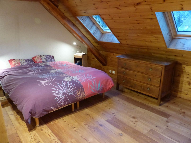 La casa se compone de 4 dormitorios y un altillo con cama, 2 baños, 3 aseos, dos de ellos independientes, una cocina totalmente equipada y un salón con chimenea. EXTERIOR -Jardín -Balcón -Terraza -Espacio(s) para aparcar -Subterráneo -Almacén para esquís, secador de botas y ropa de esquí (sala climatizada) - Lavadora - Frigorífico/congelador - Planta baja - Cocina totalmente equipada o Lavavajillas, horno, frigorífico, microondas, placa de inducción, cafetera eléctrica, Magimix, tostadora, hervidor de agua - Gran mesa (8/12 personas) - Salón : 2 sofás, sillones, TV, reproductor de DVD, chimenea con inserción - Aseo separado- 1ª PLANTA - Dos dormitorios con cama de matrimonio (140) y trastero - Altillo con cama individual (110) - Baño con ducha, lavabo y WC- 2ª PLANTA - Dos dormitorios: Cama 160 (lado Briançon) con trastero - Cama 160 + cama 90 (lado Lautaret) con trastero - Baño con ducha y lavabo - Aseo separado
