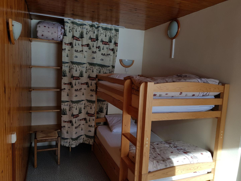 Un dormitorio con 2 literas y 1 cama nido, gran armario.