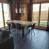 Dos sofás y un gran televisor, una mesa para 8 personas y un buffet.