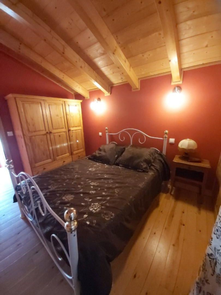 En la planta superior, 3 dormitorios, un balcón con vistas al valle y un cuarto de ducha: 6 camas para adultos y 1 cama para niños menores de 10 años.