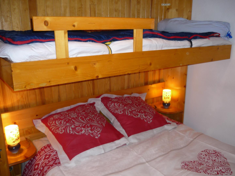 El piso de 28 m² está orientado al sur y consta de una habitación principal, un dormitorio con cama doble + cama individual para 1 niño (peso máximo 35kg)