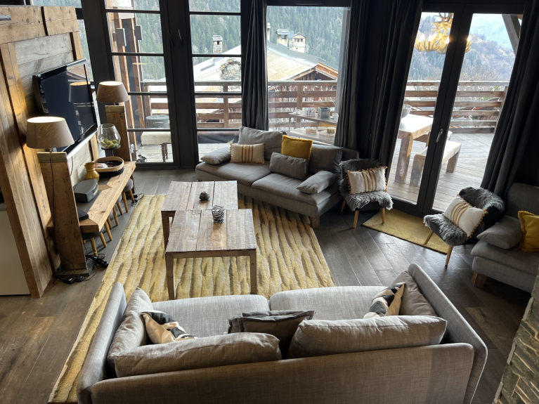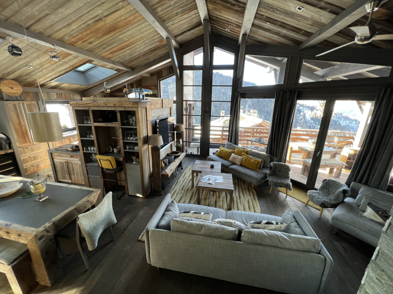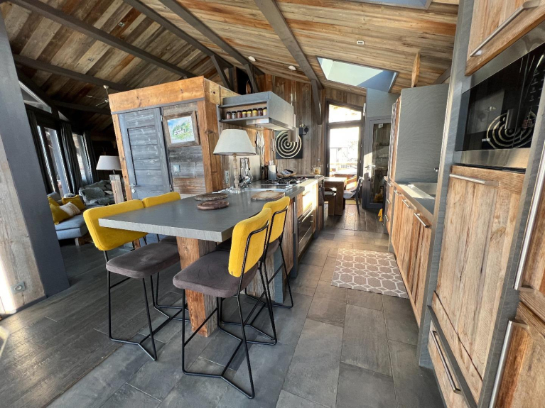 Este chalet combina la comodidad del modernismo con la calidez de una construcción de madera. Mi mujer es una gran decoradora y ha utilizado materiales antiguos en un espacio contemporáneo. El entorno es cálido, muy confortable y se ha pensado en todos los detalles para garantizar un confort óptimo en un ambiente de lujo.
