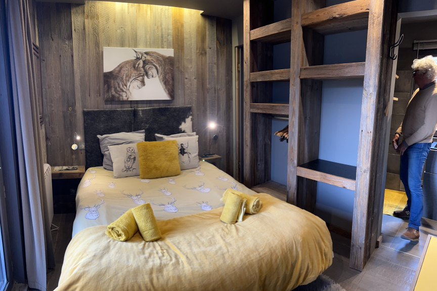 Plazas de aparcamiento privadas, cuidada decoración que combina el encanto de la madera antigua con materiales modernos en volúmenes muy contemporáneos. Servicios de alta calidad y un ambiente muy cálido garantizado. Una terraza que da al salón le permitirá disfrutar de los últimos rayos de sol frente al valle. Cada habitación está decorada de forma individual y tiene un baño con WC. 4 habitaciones están reservadas para parejas, otras 2 harán las delicias de los niños con literas. La calefacción es proporcionada por una estufa de pellets y calefacción eléctrica en un chalet que se beneficia de la última tecnología de aislamiento.
