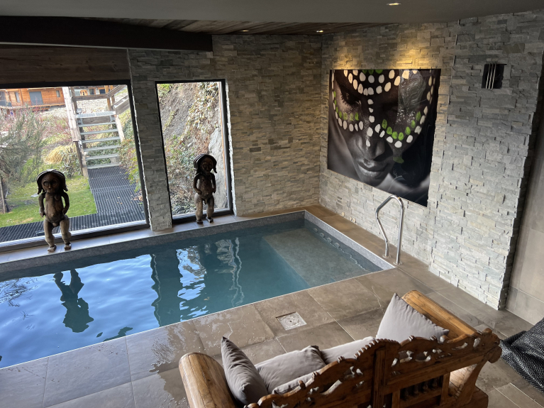 Alquiler Chalet individual Chamois luxe 14 personnes, piscine intérieure eau salée nage à contre courant et balnéo, sauna