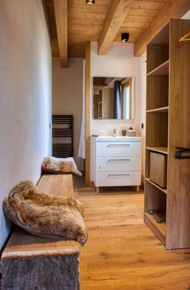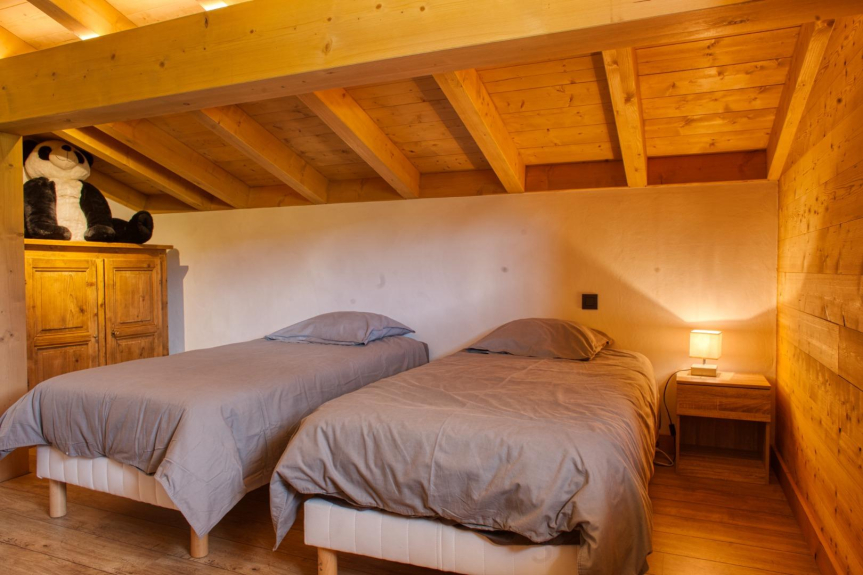En la primera planta, cocina totalmente equipada que se abre a un amplio y confortable salón y comedor. Acceso a la terraza protegida del chalet a través de grandes y luminosas ventanas. Orientación sur, con impresionantes vistas al Mont Blanc, al Aiguille du Midi y al dominio esquiable de Praz Sur Arly. Una habitación con cama doble y baño privado (ducha + WC) también ocupa la 1ª planta.