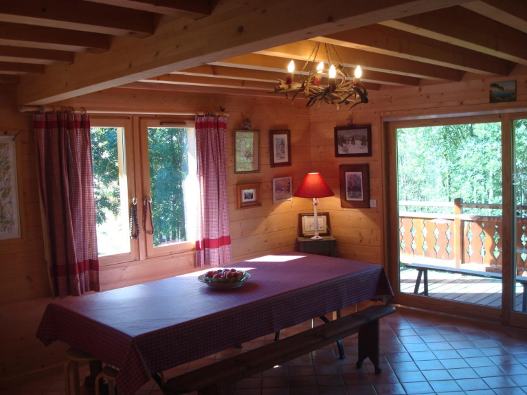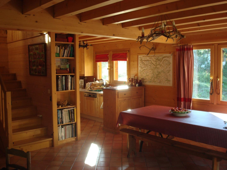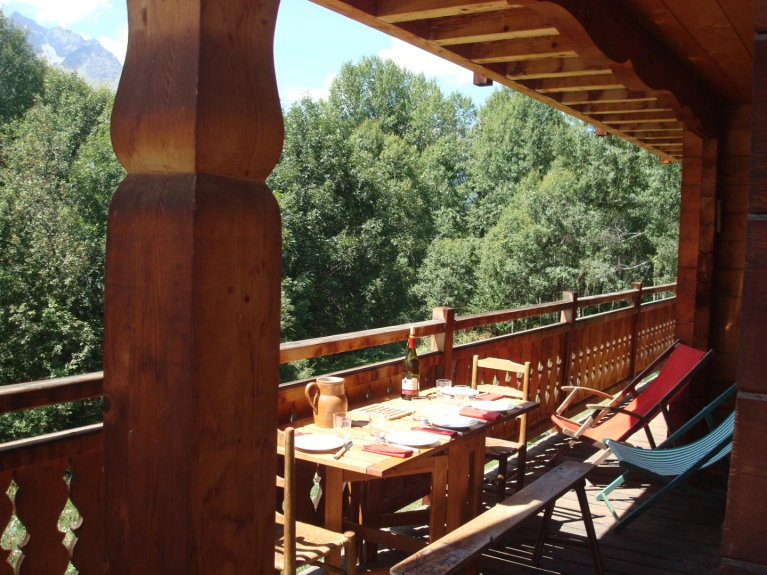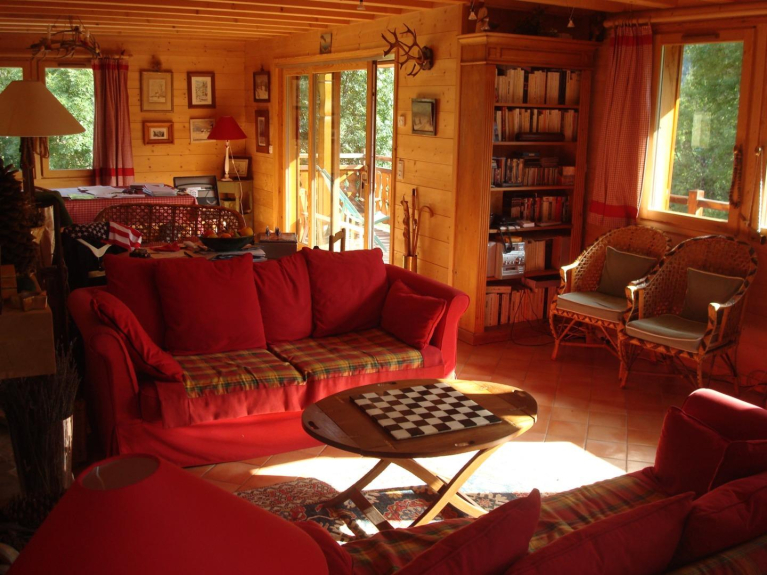 Chalet construido a principios de los años 2000, lleno de encanto, orientado al sur y con vistas a los glaciares, ofrece todo el confort (170 m2, 5 habitaciones, 2 baños + 1 lavabo, 2 WC):