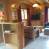 El salón tiene sofás y una pequeña estufa de leña con chimenea, lo que le da un toque acogedor y de chalet.