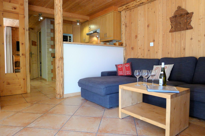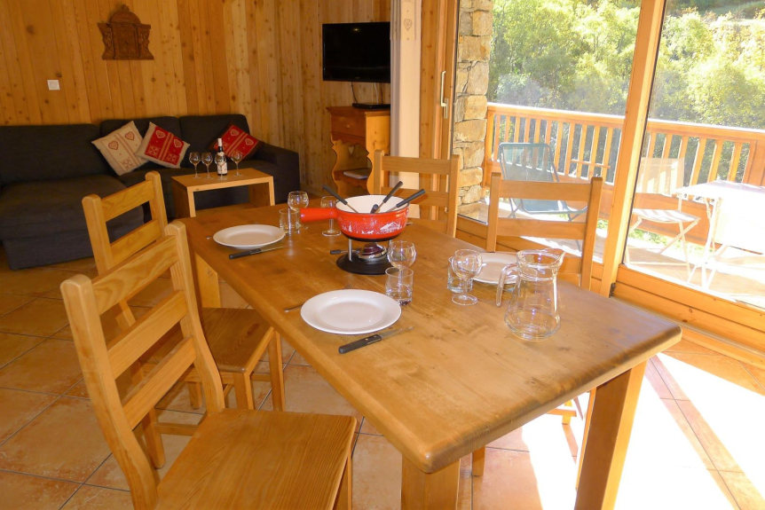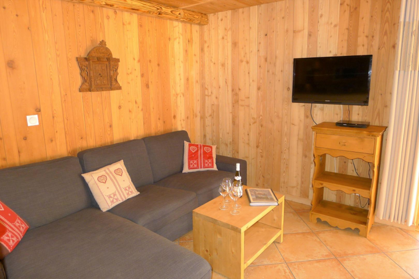 Es un piso muy cómodo, de una sola planta, orientado al sur y muy luminoso, en un típico y cálido chalet de piedra. ¡Regreso al chalet en esquís garantizado!