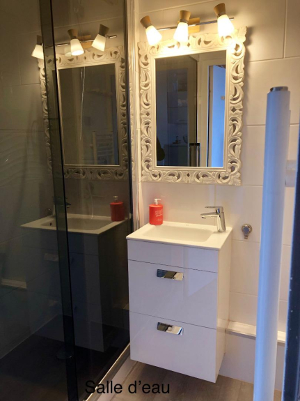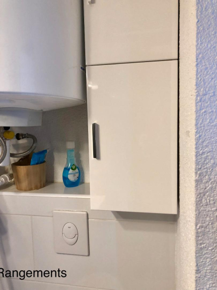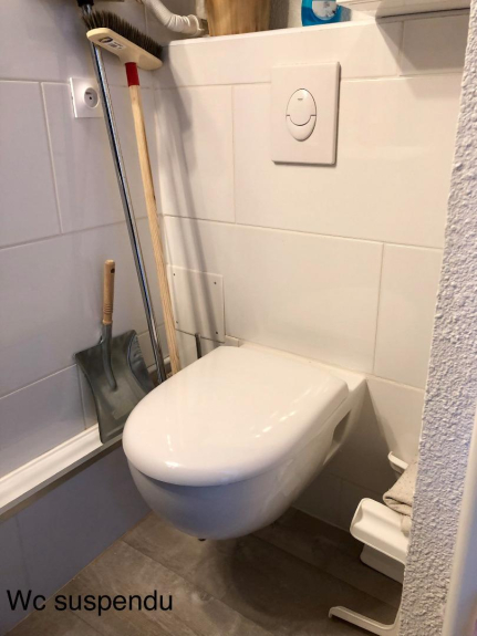 El cuarto de baño se acaba de rehacer con una ducha a ras de suelo, un inodoro suspendido sin reborde, un mueble de lavabo con 2 cajones y espacio de almacenamiento.