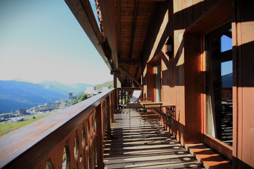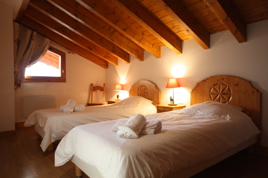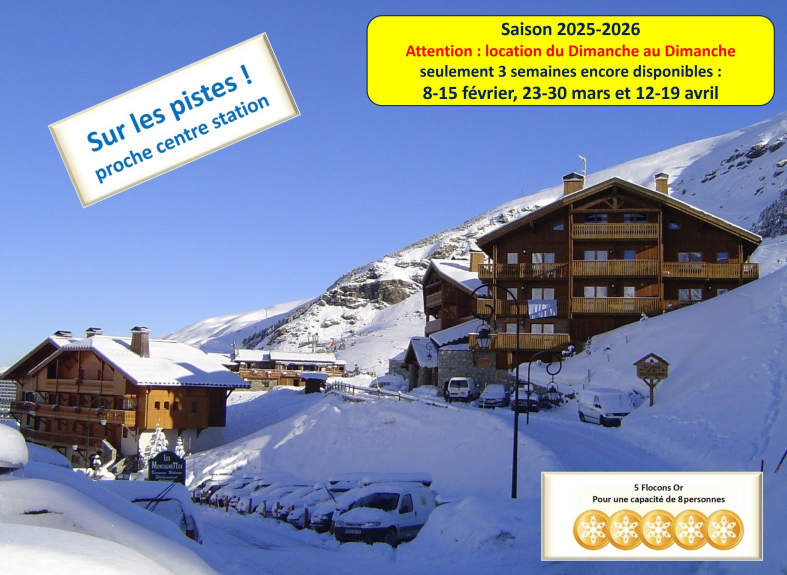 Apartamento-chalet en las pistas, situado cerca del centro de la estación con un magnífico balcón orientado al oeste, en la 2ª y última planta, para 8 a 9 personas: 5 habitaciones de 115 M2 decoradas con suelo de parquet, 4 dormitorios de 16 a 12 M2 (edredones y sábanas proporcionadas) y salón-comedor-cocina de unos 38 M2, 2 aseos, cuarto de baño y ducha con secador de pelo, lavadora-secadora, sala de estar de cuero de 6 plazas, 2 TV LCD de 82 cm, Box wifi para Mi Canal / NetFlix si se suscribe, DVD, barra de sonido Bose, hifi, Hub carga rápida 5 Smartphones o tabletas, 4 grandes armarios, cocina totalmente equipada, Nespresso, lavavajillas, hervidor de agua, juego completo de vajilla 3 x 18 piezas, mesa 10/12 cubiertos, videoteca, chimenea, calefacción por suelo radiante (14) y convectores de inercia de hierro fundido, techo alto con vigas, armario de esquí, aparcamiento cubierto gratuito. Piso para no fumadores - Wifi gratuito - Máximo 5 Flocons etiqueta Oro en 2018. El precio semanal incluye el suministro de sábanas, fundas y edredones + limpieza (excepto cocina y vajilla) + control de calidad.