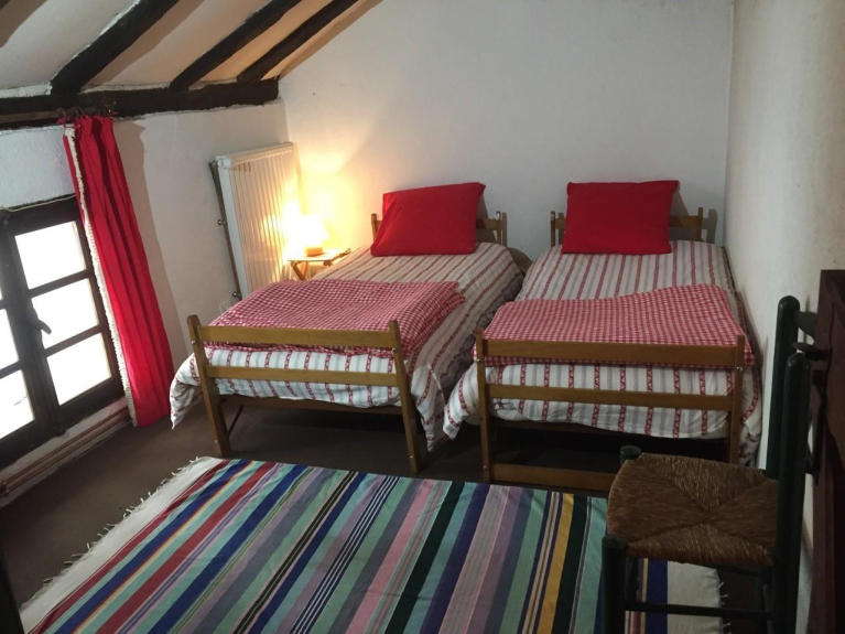 En la segunda planta, un dormitorio doble, un dormitorio con dos camas individuales (90cm) y en el rellano, una pequeña zona de descanso con una cama individual.