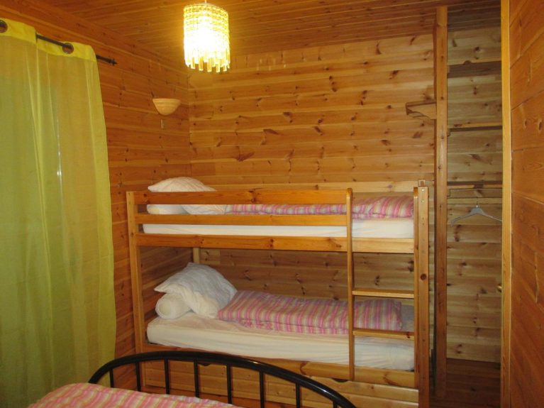 3 habitaciones, 1 con 1 cama doble TV, 1 con 1 cama doble y 2 literas y balcón 1 con 1 cama doble