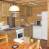 Zona de cocina: 4 placas + campana, lavavajillas, frigorífico + congelador, horno multifunción, cafetera, tostadora y hervidor eléctrico