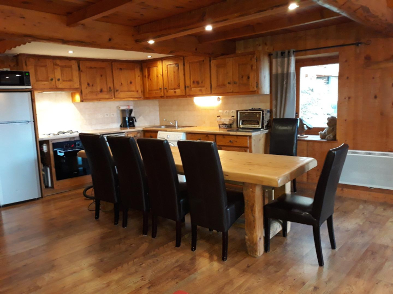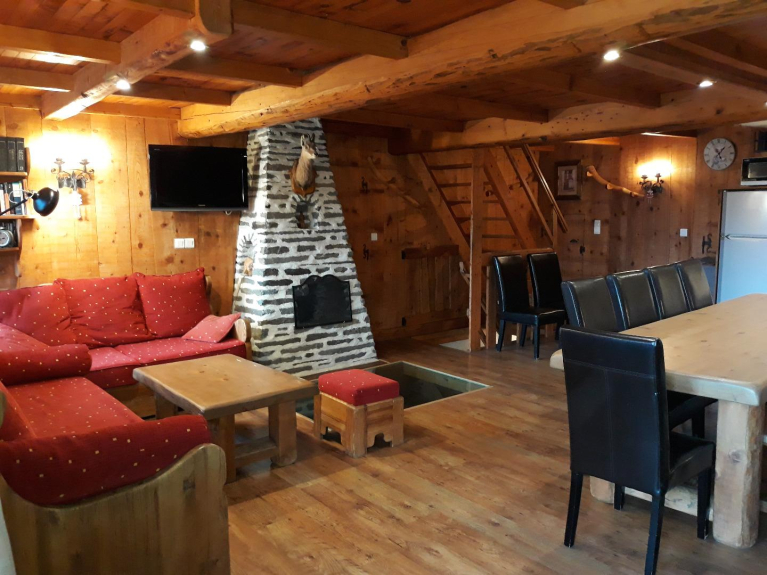 Alquile un chalet para sus vacaciones en la montaña en los Alpes franceses. Auténtico chalet saboyano situado en el centro del pueblo de Les EUCHERTS en la estación de esquí de La ROSIERE. Con una ubicación ideal a pie de pistas, este chalet individual de 150m² en 3 niveles está disponible para alquilar para 12 personas. El espacioso interior de este antiguo chalet de montaña construido en el 1700 ha sido totalmente renovado con el espíritu de la montaña.