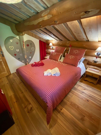 Déjese envolver por nuestro chalet, construido con troncos descortezados a mano (fustes), como una "cabaña" de trampero.