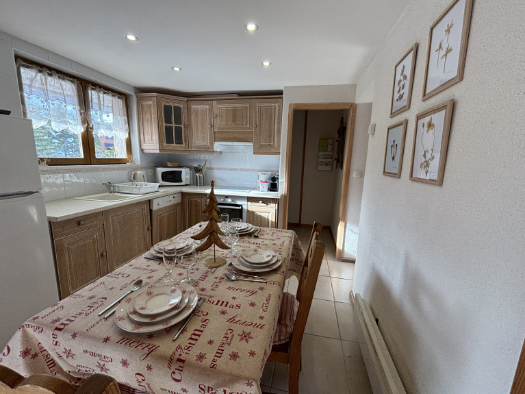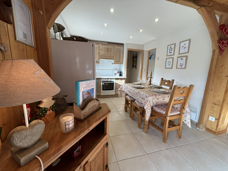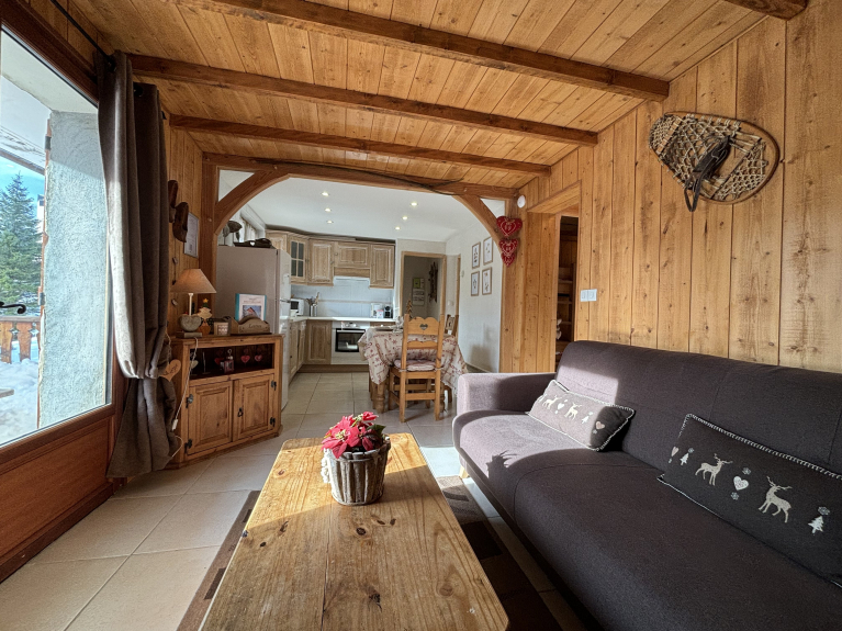 Chalet de alto standing en 3 niveles clasificado como Meublé de Tourisme cinco estrellas, situado en el corazón de la estación, a pie de pistas, cerca de los comercios (supermercado, panadería, tiendas de alquiler de esquís, escuela de esquí, guardería, restaurantes).