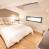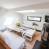 Un WC aislado y un cuarto de baño con lavabo doble, bañera y toallero musical completan el interior.