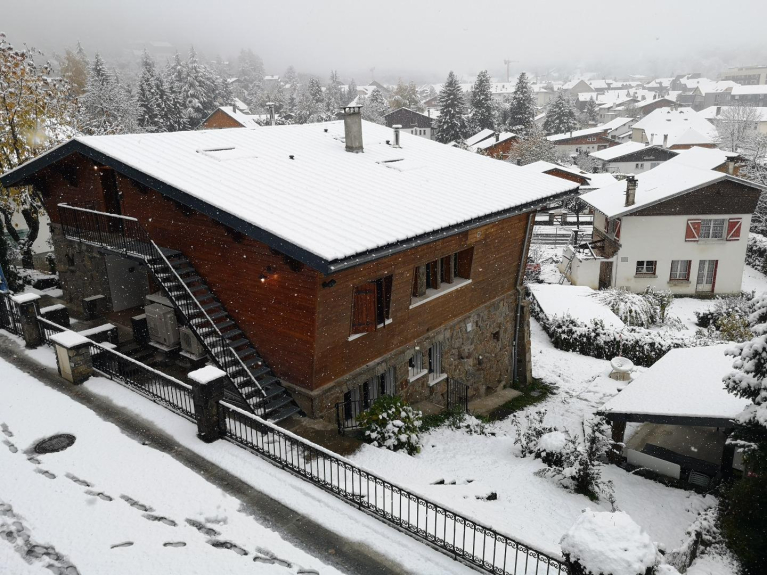 El piso está situado en el ático del chalet, con vistas ininterrumpidas a las montañas. Se accede por una escalera exterior.