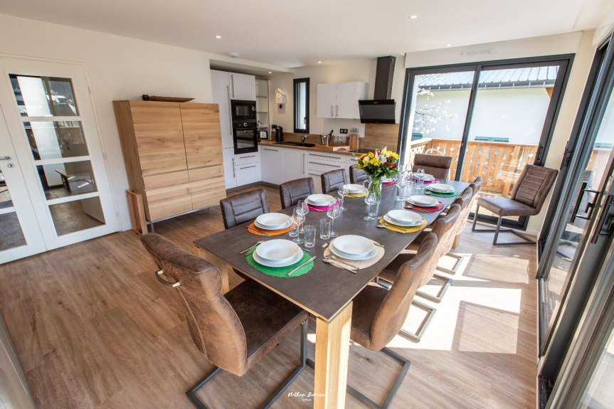 En esta configuración, usted se beneficia de todo el chalet para su gran tribu o grupo de hasta 24 viajeros, que consta de 3 niveles, el nivel del jardín del chalet - la casa rural "Cosy" - su planta baja - la casa rural "Confort" conectados a través de una escalera interior, el "Cocoon" nivel del ático independiente accesible a través de una escalera exterior.