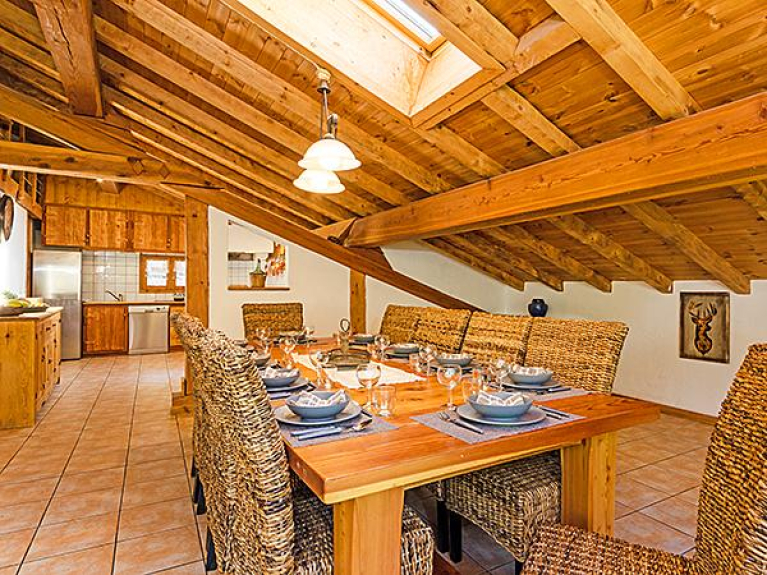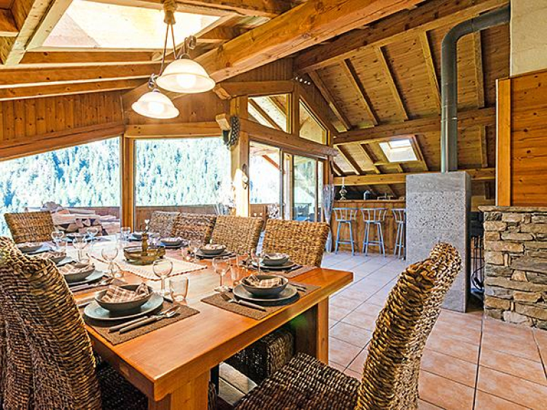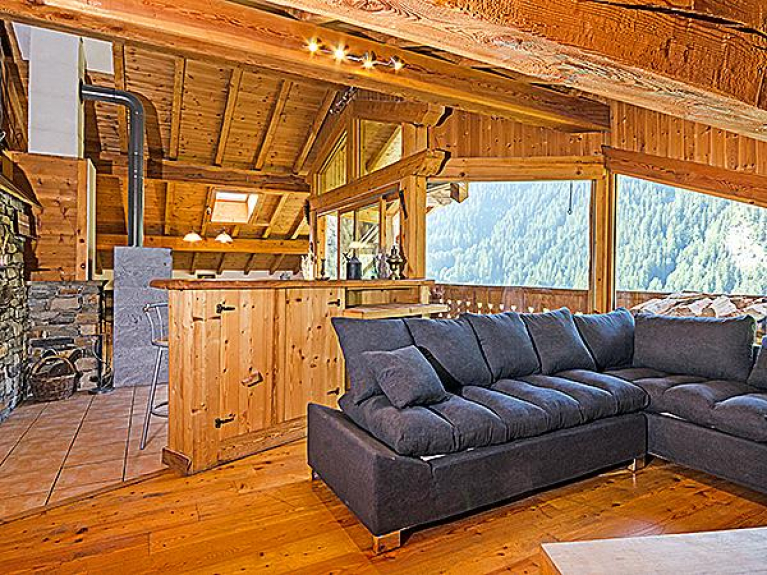 Acogedor y espacioso chalet saboyano con chimenea, sauna de infrarrojos y conexión Wi-Fi gratuita. La combinación de elementos tradicionales y comodidades modernas crea un ambiente cálido y acogedor.
