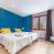 En la planta superior se encuentran los otros cuatro dormitorios: uno con cama de matrimonio (180 x 200 cm) y cuarto de baño/aseo separado. Un dormitorio doble (200 x 200 cm) con baño en suite y WC separado. Un dormitorio con dos camas individuales (90 x 200 cm): Otro dormitorio con dos camas individuales (90 x 200 cm; altura máx. 2 m; acceso aprox. 1,65 m). En la primera planta hay otro cuarto de baño con ducha y un WC separado. Un pequeño salón con TV también se encuentra en este nivel.