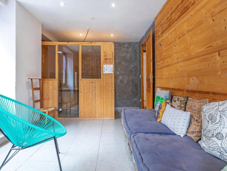 cocina independiente (lavavajillas + frigorífico + placa eléctrica y de gas + horno + microondas + cafetera + tostadora + hervidor eléctrico + máquina de raclette + set de fondue); chimenea; TV vía satélite (pantalla plana); reproductor de DVD; wifi gratuito; terraza; 3 balcones