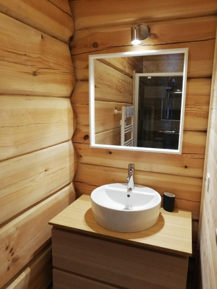 - 1 bonita sala de estar con cocina totalmente equipada, calefacción eléctrica y suelo de madera maciza, el comedor para 14 comensales, la sala de estar con TV, Wifi y su estufa de leña,