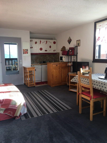 Situado en el frente de la nieve, el piso incluye una entrada con un rincón de montaña, un cuarto de baño con bañera, una sala de estar con una cocina americana bien equipada (microondas, placa eléctrica, lavavajillas, etc.), una zona de estar con un sofá cama (140x190), TV de pantalla plana y DVD, así como una cama doble plegable (140x190).Armario privado para esquís.