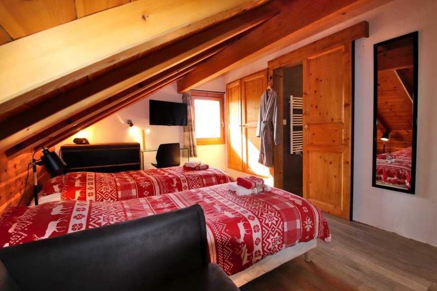 El chalet La Clautre tiene 3 niveles. Al entrar en el chalet, encontrará la sala de estar abierta al comedor, la cocina, el acceso a la terraza con vistas a las pistas y 2 dormitorios con cuarto de baño. En la primera planta hay 4 dormitorios, cada uno con su propio cuarto de ducha.