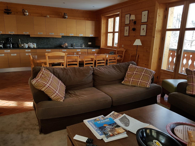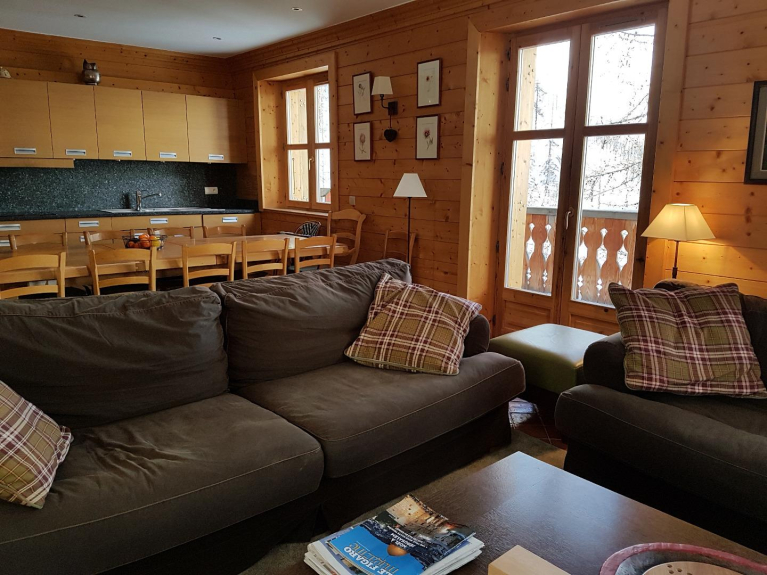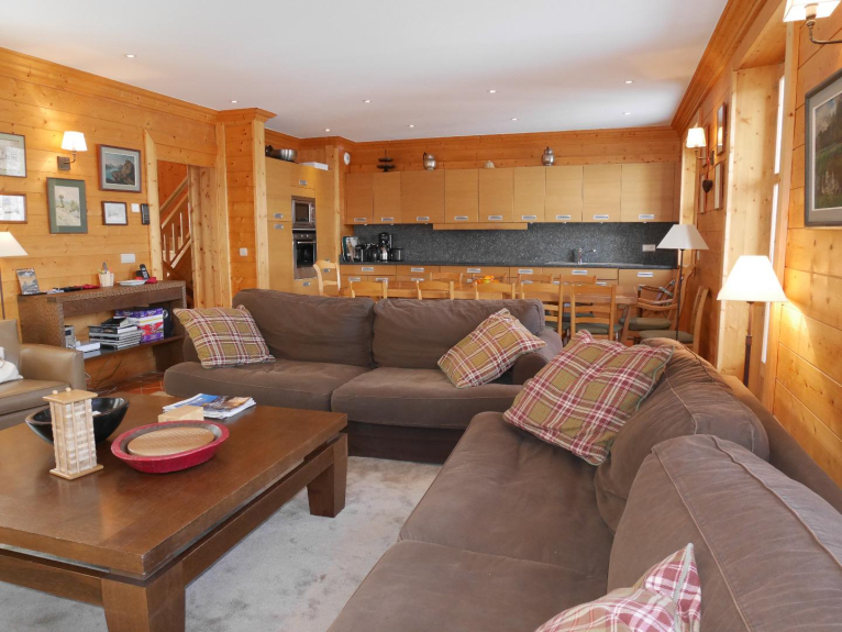 Nuestro chalet fue construido (2013) para acomodar a nuestros hijos (5), nuestros nietos, nuestros amigos, sus amigos. Con sus dos pisos de habitaciones por encima (+1) y por debajo (-1) de la sala de estar, es especialmente adecuado para recibir a varias familias. El ático se ha convertido en una sala de juegos para los niños (con dos camas) y es un elemento adicional para preservar la paz y la tranquilidad de todos. Dispone de todas las comodidades esperadas: cocina con horno, microondas, lavavajillas, nevera, congelador (en el lavadero), nespresso, TV, reproductor de DVD, lavadero con lavadora y secadora, un secador de zapatos y guardaesquís y por supuesto WIFI. El salón con su cocina abierta, su hermosa mesa de comedor para 16 personas, su cómoda zona de estar frente a la chimenea y sus vistas (triple exposición) está cerca del centro de Val d'Isère (1/4 de hora a pie) pero en una zona tranquila rodeada de árboles. Puedes ponerte los esquís a pocos metros del chalet y estar en las pistas en pocos minutos. Para los que no esquían o para los bebés, el paseo más soleado comienza a pocos pasos.