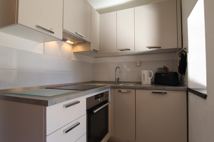 Pequeño garaje, guardaesquís, aparcamiento en la residencia.