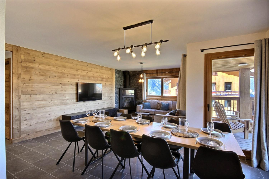 Muy luminoso y con vistas al frente de nieve, La Gentiane cuenta con un amplio salón con chimenea y una bonita cocina-comedor que da a un gran balcón orientado al este.