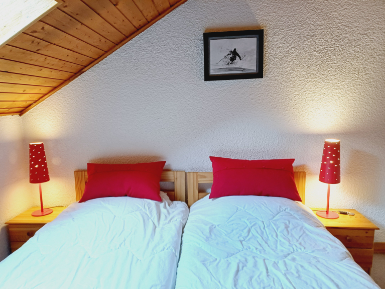 En la primera planta: un dormitorio con una cama doble/mezzanina y una cama individual adicional, un cuarto de ducha, un gran dormitorio con 3 camas individuales.