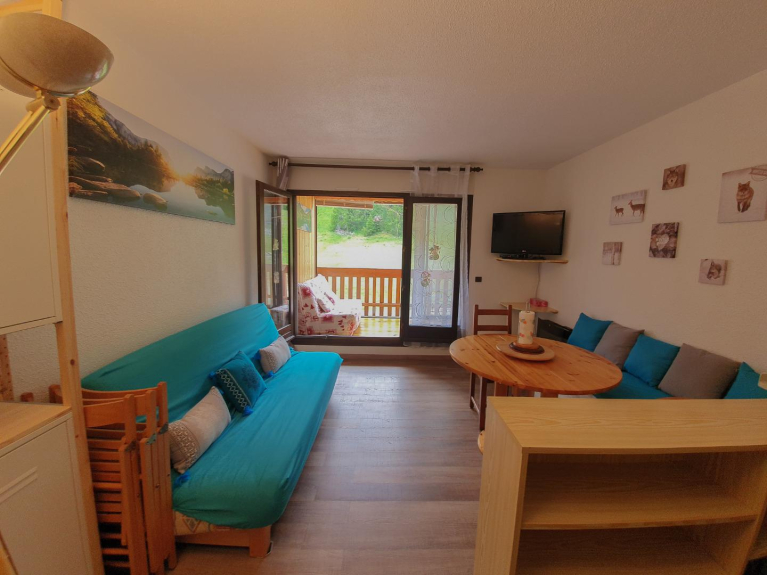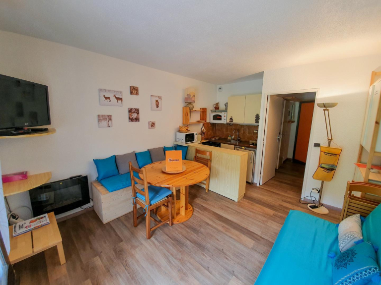 Este pequeño y modesto piso a pie de pistas ofrece todo el confort que necesita para sus semanas de descanso.
